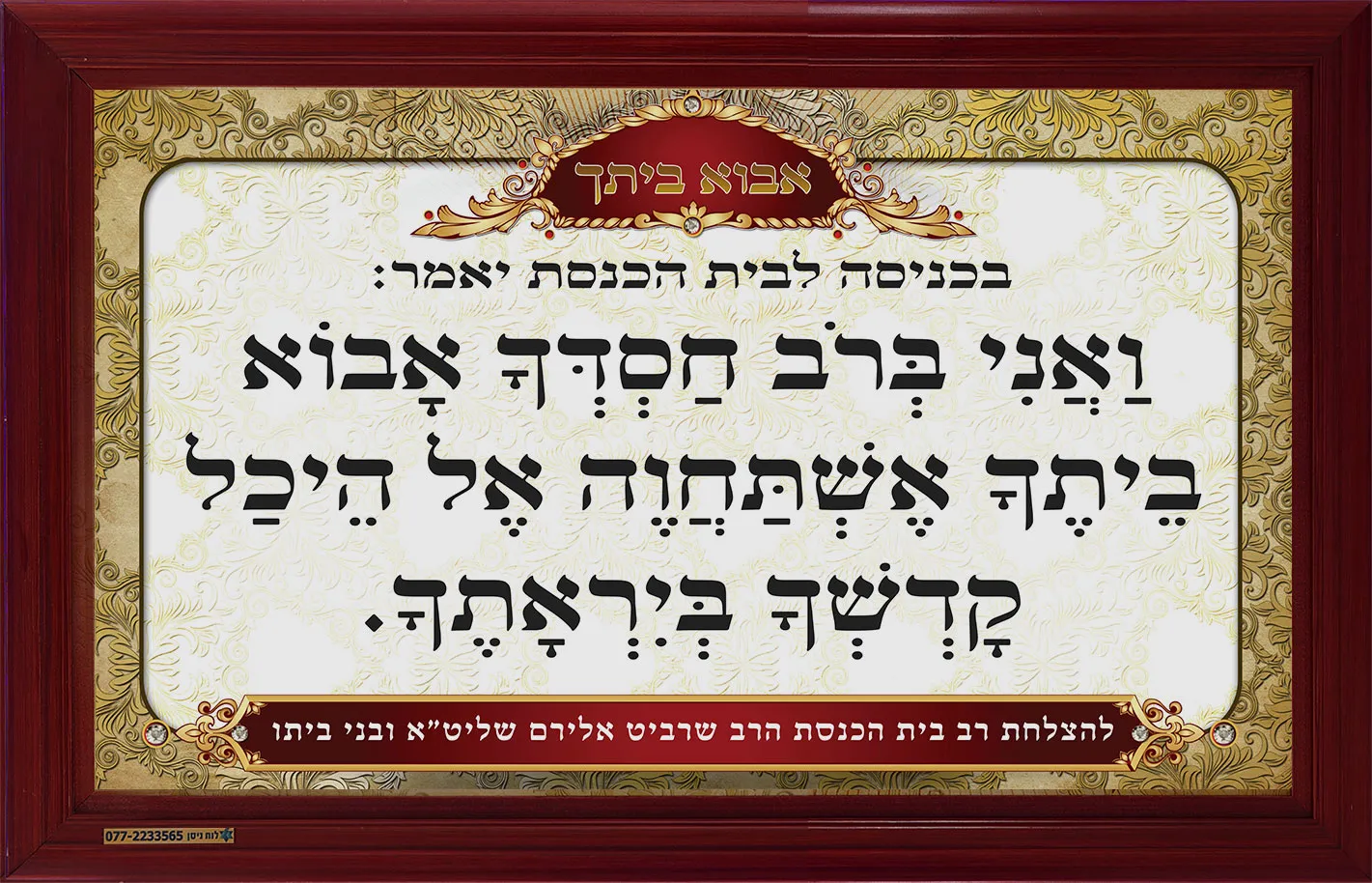 שלטים לבית כנסת בעיצובים מדהימים, עם אפשרות התאמה של מסגרות בצבעים שיתאימו לריהוט בית כנסת.